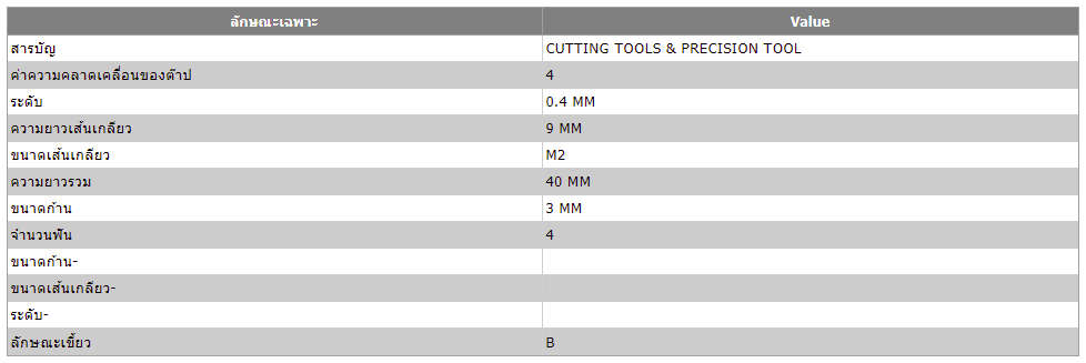 ต๊าบเกลียวแบบรีดเกลียว สำหรับเหล็ก ขนาด M2X0.4 List 6954 รุ่น NA6954B0200X0.4 ยี่ห้อ NACHI
