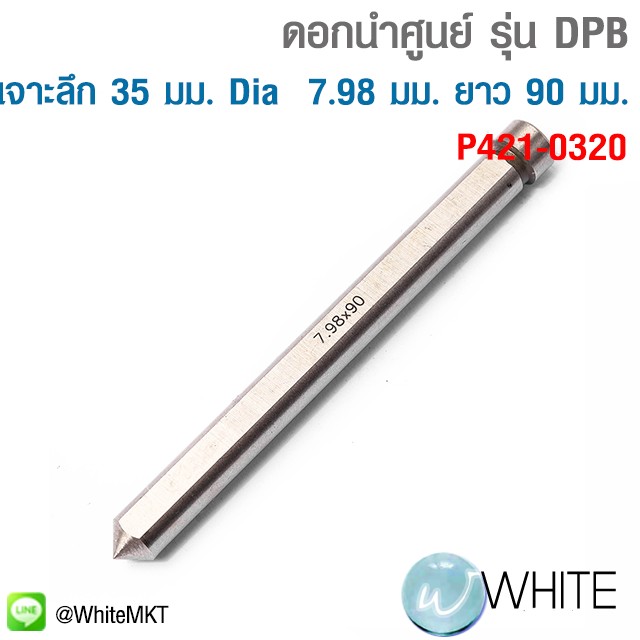 ดอกนำศูนย์ รุ่น DPB สำหรับดอกเจาะเหล็กคัตเตอร์ Jet Broach เจาะลึก 35 มม. เส้นผ่าศูนย์กลาง 7.98 มม. ความยาว 90 มม. ใช้คู่กับ ดอกเจาะเหล็กคัตเตอร์ DNTC ขนาด 18-65 มม. รุุ่น P421-0320 ยี่ห้อ POLO