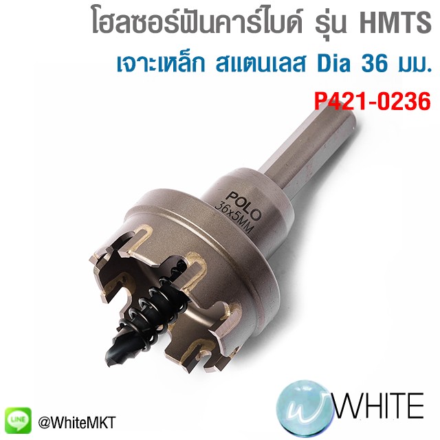 โฮลซอร์ฟันคาร์ไบด์ รุ่น HMTS สำหรับเจาะแผ่นเหล็กและสแตนเลส ความหนาไม่เกิน 5 มม. ขนาดเส้นผ่าศูนย์กลาง 36 มม. รุุ่น P421-0236 ยี่ห้อ POLO