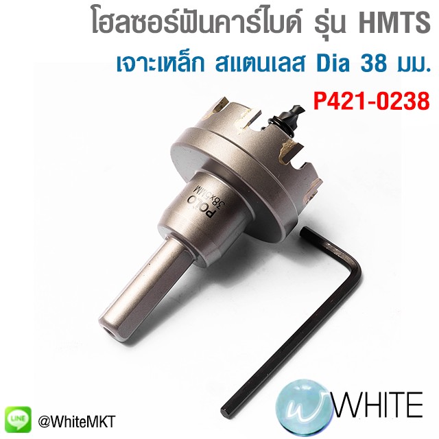 โฮลซอร์ฟันคาร์ไบด์ รุ่น HMTS สำหรับเจาะแผ่นเหล็กและสแตนเลส ความหนาไม่เกิน 5 มม. ขนาดเส้นผ่าศูนย์กลาง 38 มม. รุุ่น P421-0238 ยี่ห้อ POLO