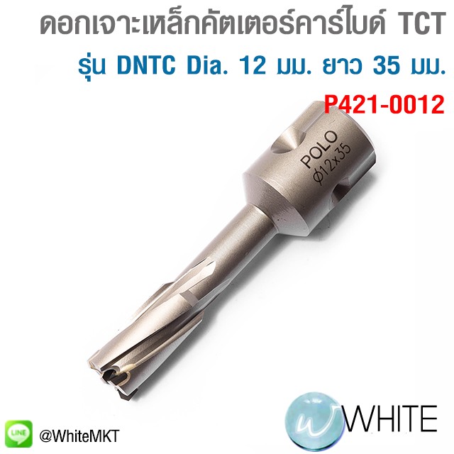 ดอกเจาะเหล็กคัตเตอร์คาร์ไบด์ TCT รุ่น DNTC ขนาดเส้นผ่าศูนย์กลาง 12 มม. ความยาว 35 มม. เจาะได้ลึกสูงสุด 35 มม. สามารถเจาะเหล็กได้แม่นยำ ใช้ได้กับสว่านแท่นแม่เหล็กทุกยี่ห้อ รุุ่น P421-0012 ยี่ห้อ POLO