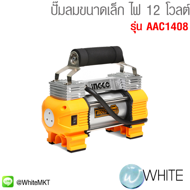 ปั๊มลมขนาดเล็ก รุ่น AAC2508 ไฟ 12 โวลต์ กระแสไฟ 18 แอมป์ แรงดันลม 8 บาร์ เหมาะสำหรับสูบยางรถยนต์ รุ่น I121-AAC2508 ยี่ห้อ INGCO