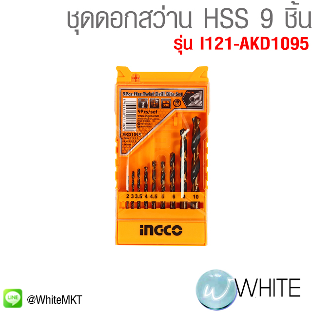 ชุดดอกสว่าน HSS 9 ชิ้น รุ่น AKD1095 ขนาด ขนาด 2, 3, 3.5, 4, 4.5, 5, 6, 8, 10 มม. เหมาะสำหรับเจาะเหล็ก รุ่น I121-AKD1095 ยี่ห้อ INGCO