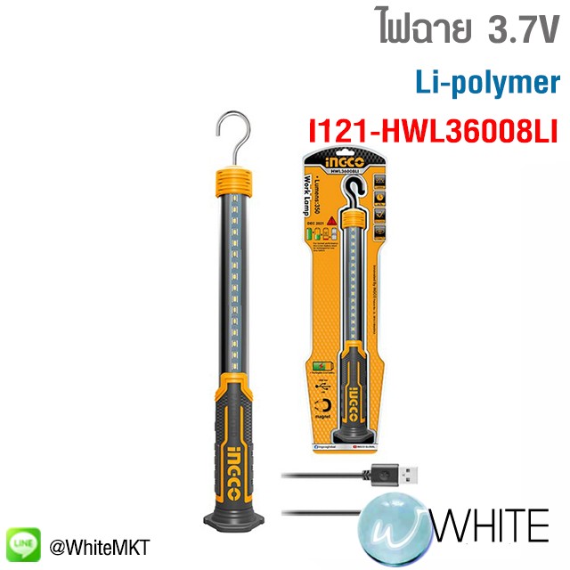 ไฟฉาย 3.7V Li-polymer ใช้แบตเตอรี่ Lithium polymer (3.7V / 3600 mAh) รุ่น I121-HWL36008LI ยี่ห้อ INGCO