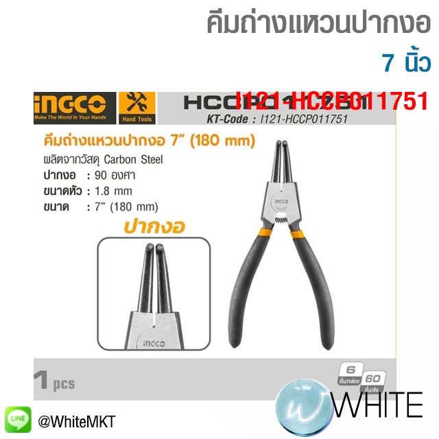 คีมถ่างแหวนปากงอ 7 นิ้ว INGCO รุ่น HCCP011751 รุ่น I121-HCCP011751 ยี่ห้อ INGCO