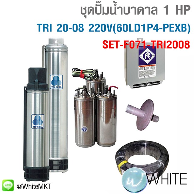 ชุดปั๊มน้ำบาดาล 1 HP TRI 20-08 220V(60LD1P4-PEXB) รุุ่น SET-F071-TRI2008 ยี่ห้อ FRANKLIN