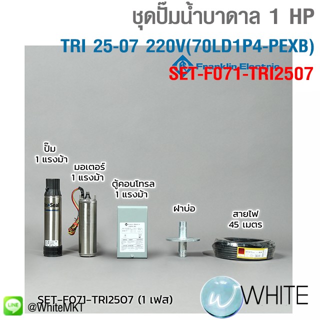 ชุดปั๊มน้ำบาดาล 1 HP TRI 25-07 220V(70LD1P4-PEXB) รุุ่น SET-F071-TRI2507 ยี่ห้อ FRANKLIN