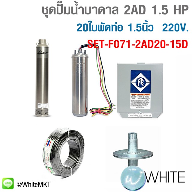 ชุดปั๊มน้ำบาดาล 2AD 1.5 HP 20ใบพัดท่อ 1.5นิ้ว 220V. รุุ่น SET-F071-2AD20-15D ยี่ห้อ FRANKLIN