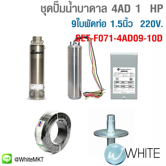 ชุดปั๊มน้ำบาดาล 4AD 1 HP 9ใบพัดท่อ 1.5นิ้ว 220V. รุุ่น SET-F071-4AD09-10D ยี่ห้อ FRANKLIN
