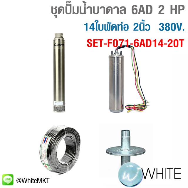 ชุดปั๊มน้ำบาดาล 6AD 2 HP 14ใบพัดท่อ 2นิ้ว 380V. รุุ่น SET-F071-6AD14-20T ยี่ห้อ FRANKLIN