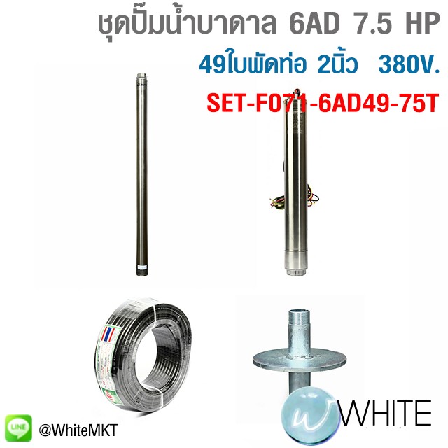 ชุดปั๊มน้ำบาดาล 6AD 7.5 HP 49ใบพัดท่อ 2นิ้ว 380V. รุุ่น SET-F071-6AD49-75T ยี่ห้อ FRANKLIN