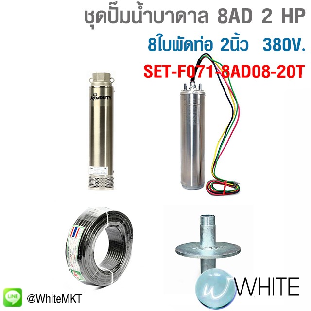 ชุดปั๊มน้ำบาดาล 8AD 2 HP 8ใบพัดท่อ 2นิ้ว 380V. รุุ่น SET-F071-8AD08-20T ยี่ห้อ FRANKLIN