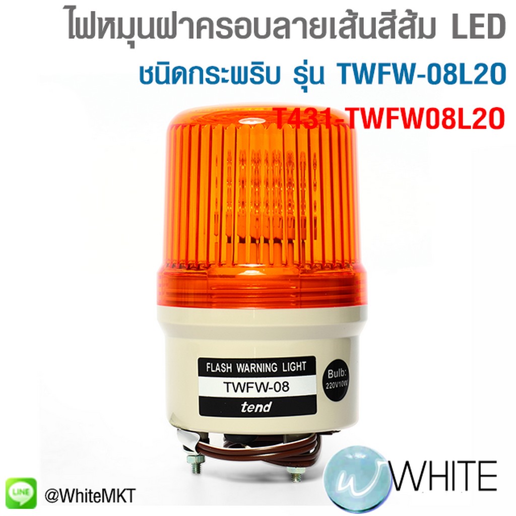 ไฟหมุนฝาครอบลายเส้นสีส้ม หลอด LED ชนิดกระพริบ รุ่น TWFW-08L2O ขนาด 80 มม. แรงดันไฟฟ้า 220 โวลต์ ผลิตจากไต้หวัน ใช้เพื่อการเตือนภัย เตือนอันตราย ในพื้นที่ก่อสร้าง หรือ ในเขตการจราจรที่คับคั่ง รุุ่น T431-TWFW08L2O ยี่ห้อ TEND