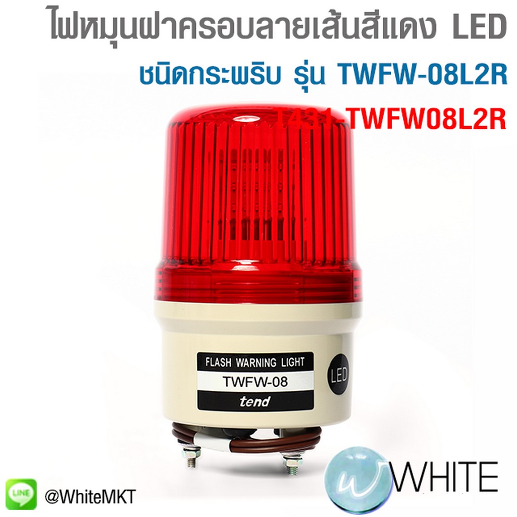 ไฟหมุนฝาครอบลายเส้นสีแดง หลอด LED ชนิดกระพริบ รุ่น TWFW-08L2R ขนาด 80 มม. แรงดันไฟฟ้า 220 โวลต์ ผลิตจากไต้หวัน ใช้เพื่อการเตือนภัย เตือนอันตราย ในพื้นที่ก่อสร้าง หรือ ในเขตการจราจรที่คับคั่ง รุุ่น T431-TWFW08L2R ยี่ห้อ TEND