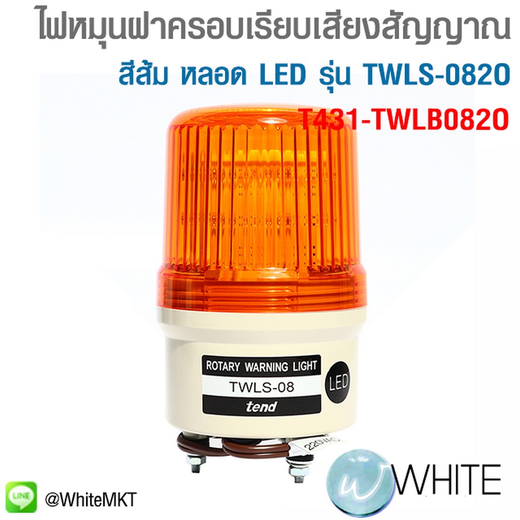 ไฟหมุนฝาครอบเรียบพร้อมเสียงสัญญาณออดสีส้ม หลอด LED รุ่น TWLS-082O ขนาด 80 มม. แรงดันไฟฟ้า 220 โวลต์ ผลิตจากไต้หวัน ใช้เพื่อการเตือนภัย เตือนอันตราย ในพื้นที่ก่อสร้าง หรือ ในเขตการจราจรที่คับคั่ง รุุ่น T431-TWLB082O ยี่ห้อ TEND