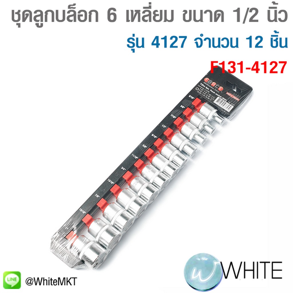 ชุดลูกบล็อก 6 เหลี่ยม ขนาด 1/2 นิ้ว รุ่น 4127 จำนวน 12 ชิ้น หน่วยเป็นนิ้ว เบอร์ 5/16 นิ้ว - 1 นิ้ว ผลิตในไต้หวัน (ฟอร์ซ) รุุ่น F131-4127 ยี่ห้อ FORCE
