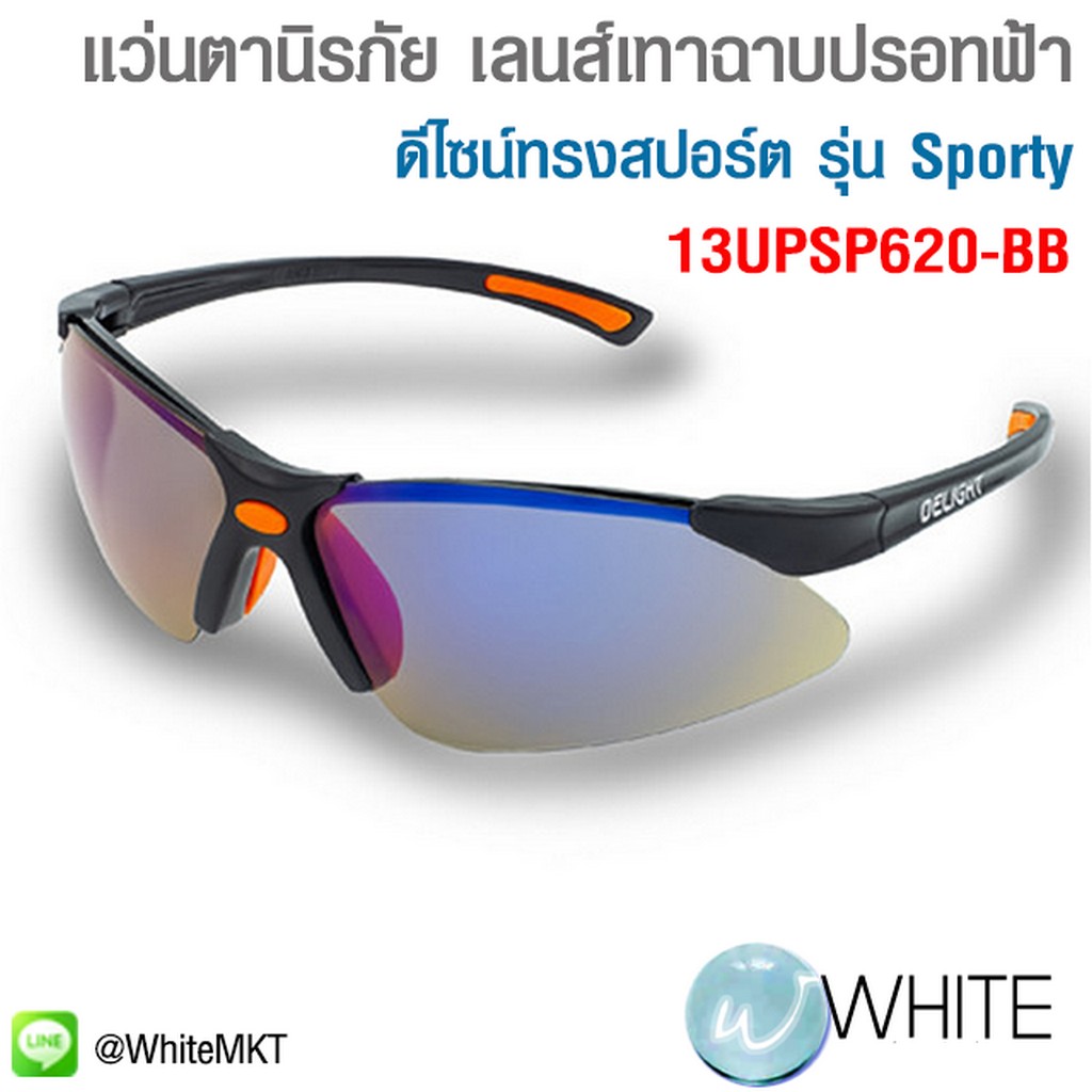 แว่นตานิรภัย เลนส์เทาฉาบปรอทฟ้า ดีไซน์ทรงสปอร์ต รุ่น Sporty รุุ่น 13UPSP620-BB ยี่ห้อ DELIGHT