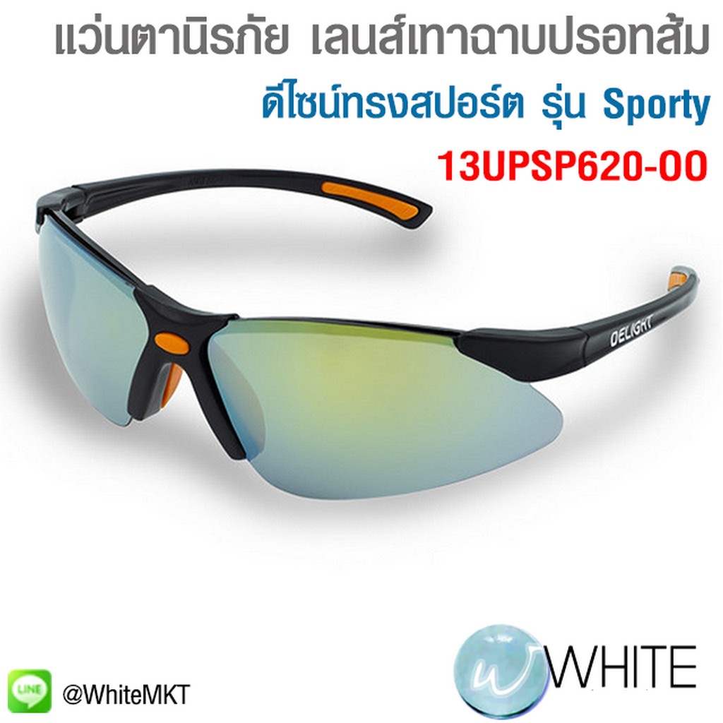 แว่นตานิรภัย เลนส์เทาฉาบปรอทส้ม ดีไซน์ทรงสปอร์ต รุ่น Sporty รุุ่น 13UPSP620-OO ยี่ห้อ DELIGHT