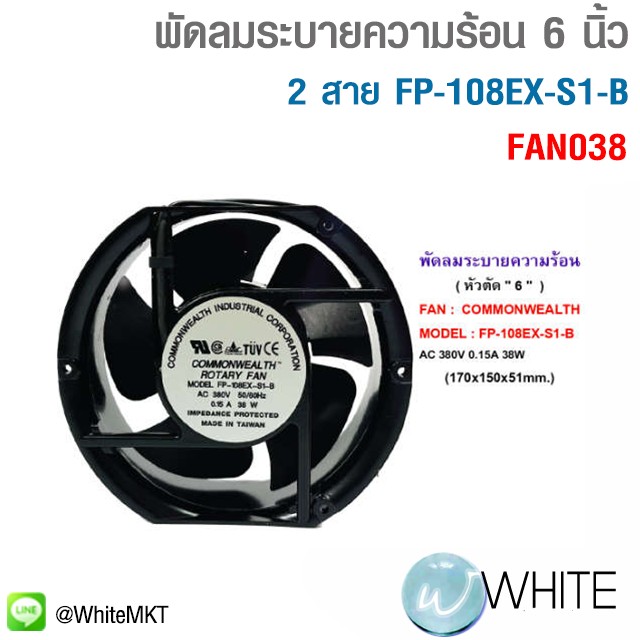 พัดลมระบายความร้อน 6 นิ้ว 2 สายFAN COMMONWEALTH FP-108EX-S1-B รุุ่น FAN001 ยี่ห้อ COMMONWEALTH (A11)