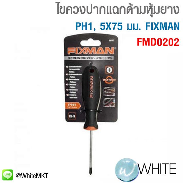 ไขควงปากแฉกด้ามหุ้มยาง PH1, 5x75 มม. FIXMAN