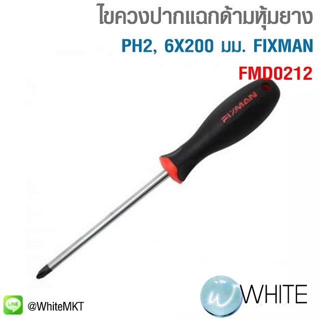 ไขควงปากแฉกด้ามหุ้มยาง PH2, 6x200 มม. FIXMAN