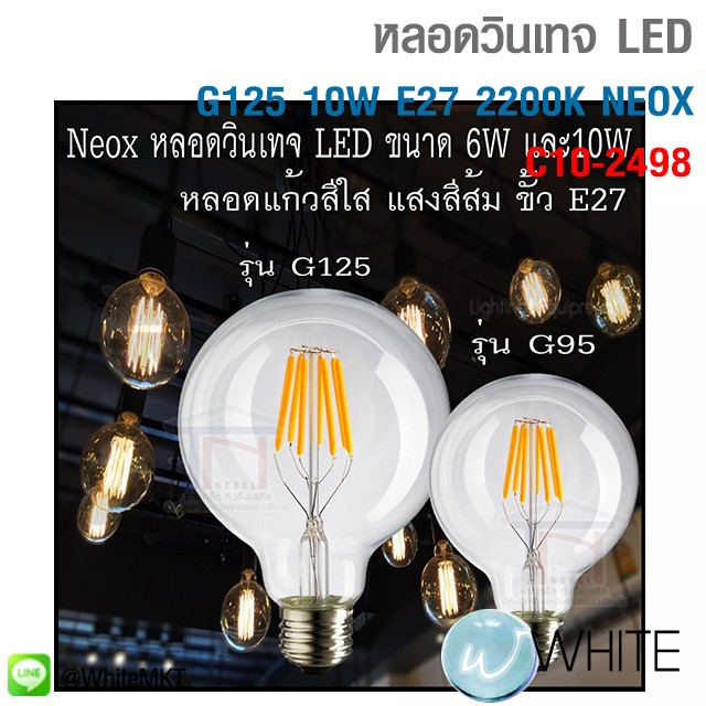 10W G125 หลอดวินเทจ LED ขนาด แสงสีส้ม 2200K ขั้ว E27 หลอดแก้วสีใส NEOX รุุ่น C10-2498 C10