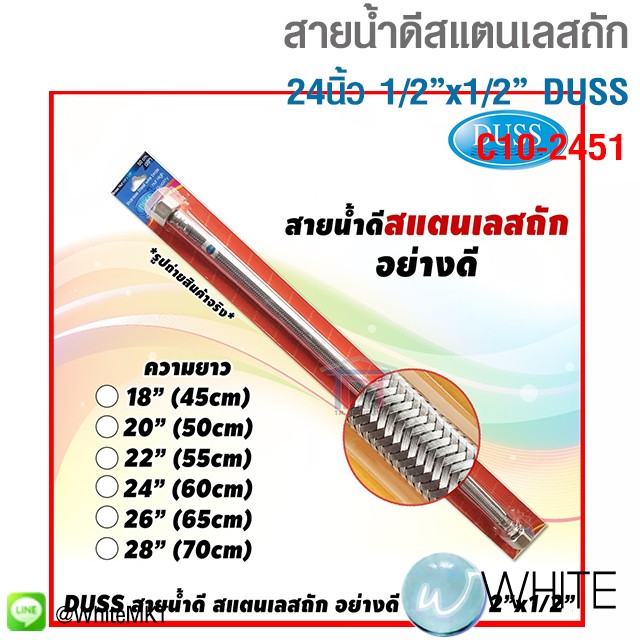 24นิ้ว (60cm) สายน้ำดี สแตนเลสถัก อย่างดี ข้อต่อ 1/2"x1/2" DUSS รุุ่น C10-2451 C10