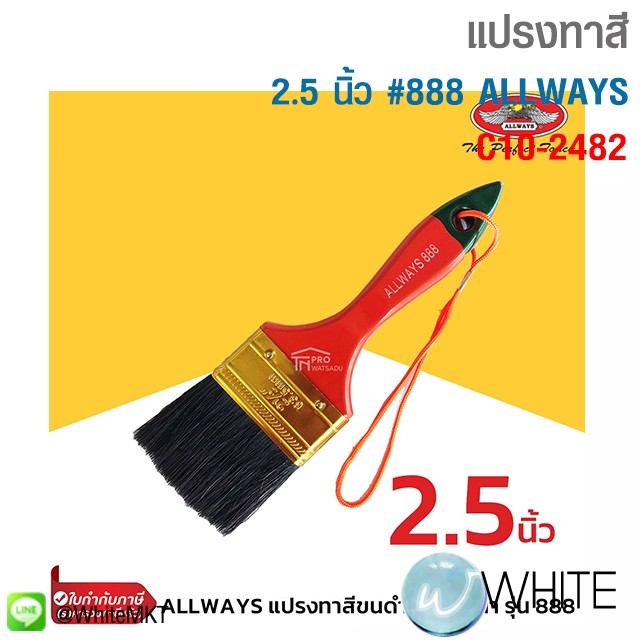 2.5 นิ้ว #888 แปรงทาสี ขนดำ อย่างหนา 1 - 4 นิ้ว ขนแปรงยาวสม่ำเสมอและยึดติดกับตัวด้ามแน่น รุ่น 888 ALLWAYS รุุ่น C10-2482 C10