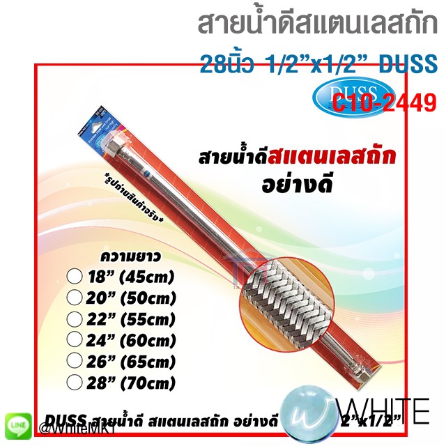 28นิ้ว (70cm) สายน้ำดี สแตนเลสถัก อย่างดี ข้อต่อ 1/2"x1/2" DUSS รุุ่น C10-2449 C10