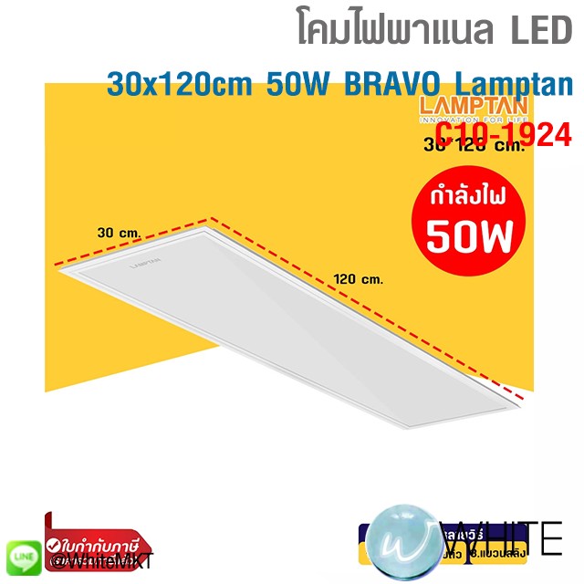 30x120 cm (50W)BRAVO LED PANEL LIGHT โคมฝังฝ้า โคมไฟติดเพดาน โคมพาแนล ไฟพาแนล โคมไฟพาแนล บางเฉียบ รุ่น BRAVO V2 Lamptan รุุ่น C10-1924 C10