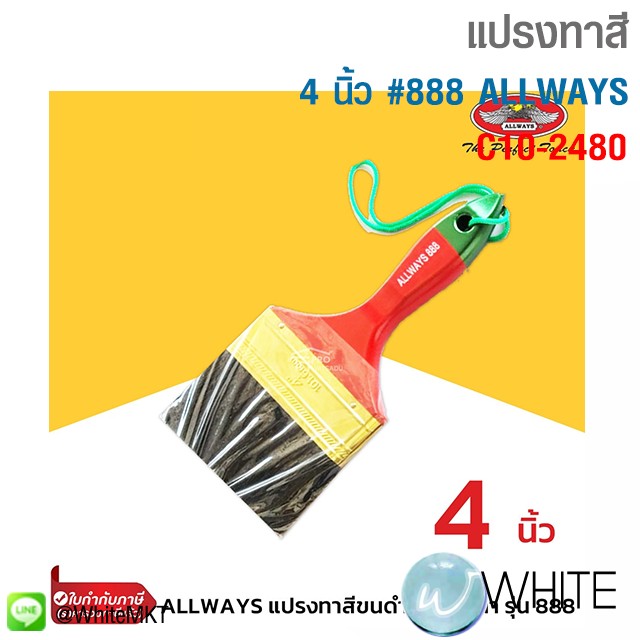 4 นิ้ว #888 แปรงทาสี ขนดำ อย่างหนา 1 - 4 นิ้ว ขนแปรงยาวสม่ำเสมอและยึดติดกับตัวด้ามแน่น รุ่น 888 ALLWAYS รุุ่น C10-2480 C10