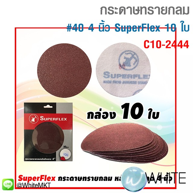 #40(หยาบสุด) กระดาษทรายกลมหลังสักหลาด 4 นิ้ว สำหรับแป้นจับกระดาษทรายหนามเตย (กล่อง 10 ใบ) ยี่ห้อ SuperFlex รุุ่น C10-2444 C10