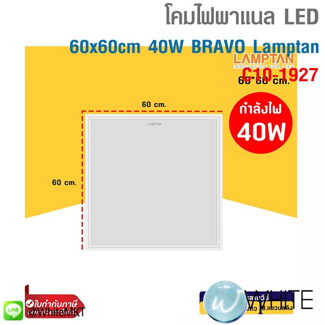 60x60cm (40W)BRAVO LED PANEL LIGHT โคมฝังฝ้า โคมไฟติดเพดาน โคมพาแนล ไฟพาแนล โคมไฟพาแนล บางเฉียบ รุ่น BRAVO V2 Lamptan รุุ่น C10-1927 C10