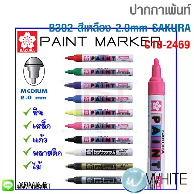 B302 สีเหลือง ปากกาเพ้นท์ หัวใหญ่ 2.0mm. SAKURA PAINT MARKER รุุ่น C10-2469 C10