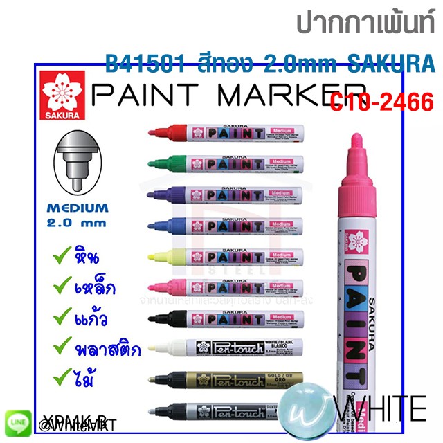 ปากกาเพ้นท์ หัวใหญ่ SAKURA ที่สามารถเขียนได้ดีลงบนวัสดุต่างๆ เช่น หิน เหล็ก แก้ว พลาสติก ไม้ และ กระดาษ ปลอดภัยจากสารพิษด้วยมาตรฐาน AP ที่ได้รับการรับรองจากประเทศสหรัฐอเมริกา เหมาะสำหรับงานศิลปะต่างๆ เช่น เพนท์แก้ว หรือ เซรามิค และ งานอุตสาหกรรมต่างๆ