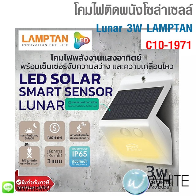 โคมไฟติดผนัง โซล่าเซลล์ LED Solar Smart Sensor รุ่น Lunar 3W แสงนวล Lamptan รุุ่น C10-1971 C10