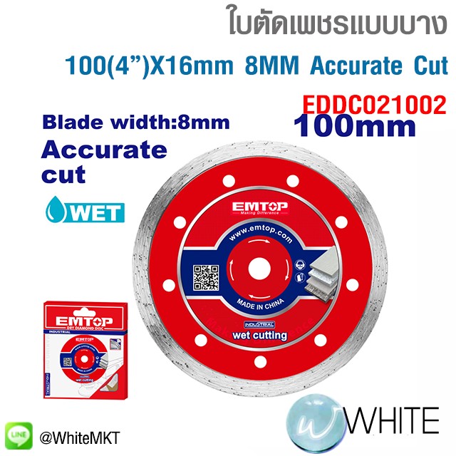 ใบตัดเพชรแบบบาง 100(4")X16mm 8MM Accurate Cut รุุ่น EDDC021002 ยี่ห้อ EMTOP C20
