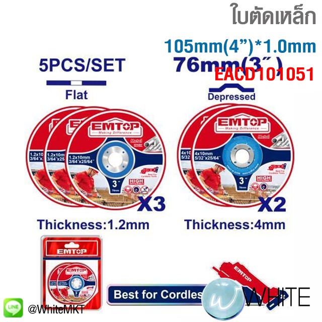 ใบตัดเหล็ก 105mm(4")*1.0mm รุุ่น EACD101051 ยี่ห้อ EMTOP C20