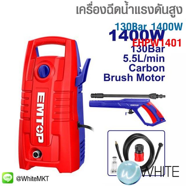 เครื่องฉีดน้ำแรงดันสูง 130Bar 1400W brush motorEHPW1401 ยี่ห้อ EMTOP C20