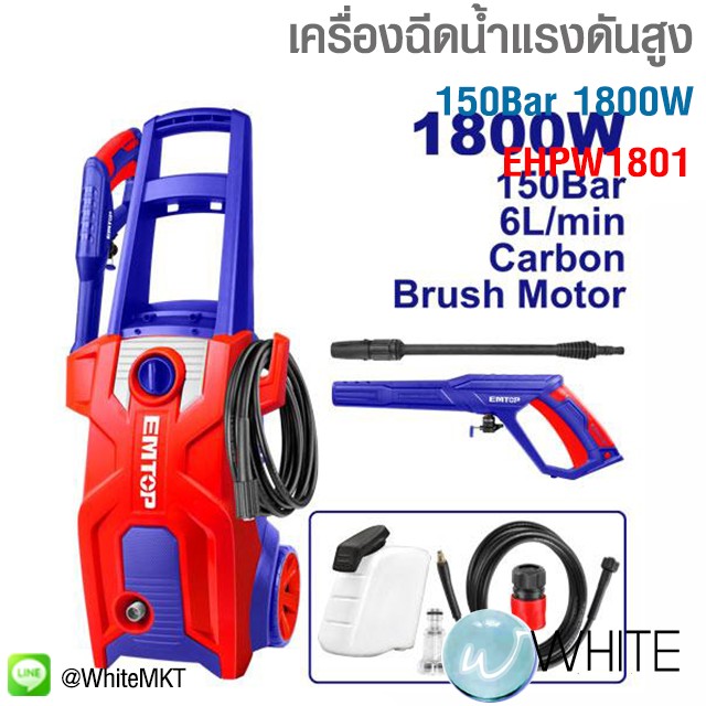 เครื่องฉีดน้ำแรงดันสูง 150Bar 1800W brush motorEHPW1801 ยี่ห้อ EMTOP C20