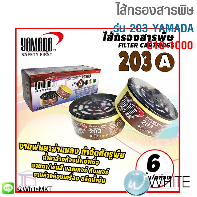ไส้กรอง สารพิษ รุ่น 203 งานสารเคมี ยาฆ่าแมลง พ่นสี (กล่อง 6 ชิ้น) สำหรับหน้ากาก Yamada รุ่น 522 YAMADA รุุ่น C10-1000 C10