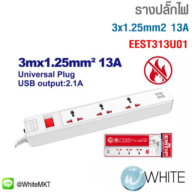 รางปลั๊กไฟ 3x1.25mm2 power cable 13AEEST313U01 ยี่ห้อ EMTOP C20