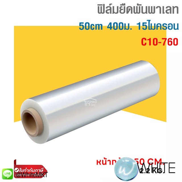 50cm. ฟิล์มยืดพันพาเลท Stretch film ขนาด หน้ากว้าง10/25/50ซม. ยาว 400ม.หนา 15 ไมครอน รุุ่น C10-760 C10