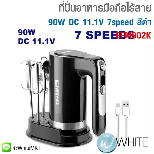 ที่ปั่นอาหารมือถือไร้สาย 90W DC 11.1V 7speed สีดำEFM902K ยี่ห้อ EMTOP C20