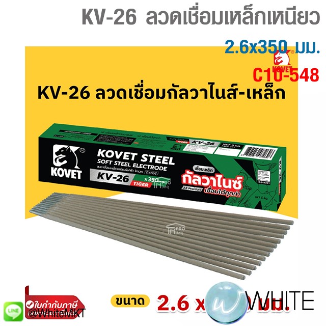 KV-26 ลวดเชื่อมเหล็กเหนียวไฟฟ้า 2.6x350 มม. [ห่อ2กก.] KOVET รุุ่น C10-548 C10