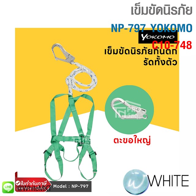 เข็มขัดนิรภัย รัดทั้งตัว ตะขอใหญ่ NP-797 YOKOMO รุุ่น C10-748 C10