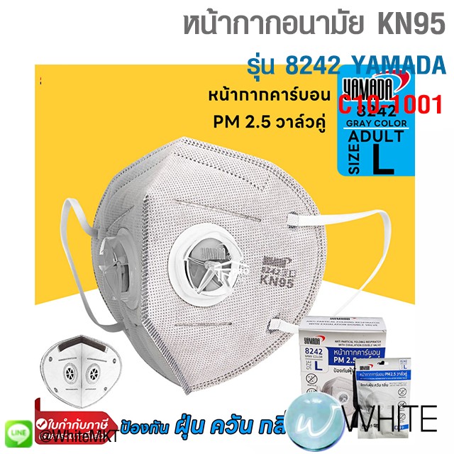 หน้ากากอนามัย กรองฝุ่น PM2.5 KN95 คาร์บอน ดับเบิ้ลวาล์ว คล้องหู แบบพับได้ รุ่น 8242 5 ชิ้น YAMADA รุุ่น C10-1001 C10