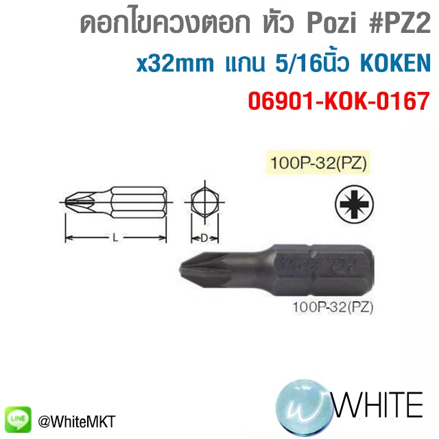 ดอกไขควงตอก หัว Pozi #PZ2 x32mm แกน 5/16นิ้ว KOKEN 100P-32(PZ)06901-KOK-0167 C23