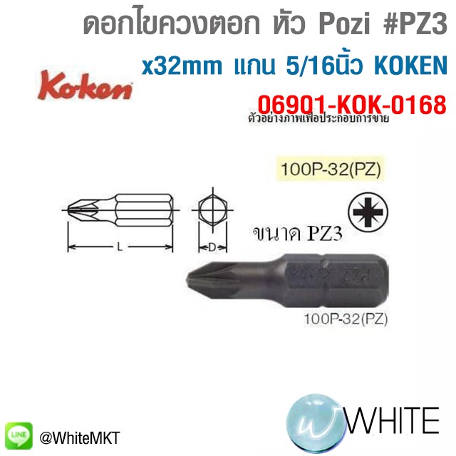 ดอกไขควงตอก หัว Pozi #PZ3 x32mm แกน 5/16นิ้ว KOKEN 100P-32(PZ)06901-KOK-0168 C23