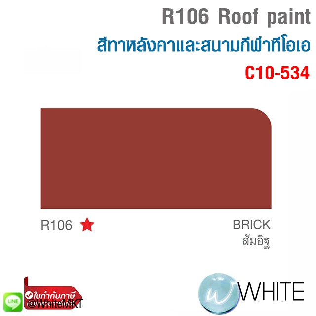 R106 Roof paint สีทาหลังคาและสนามกีฬาทีโอเอ เฉดแม่สี [แกลลอน] [3.5ลิตร] TOA รุุ่น C10-534 C10